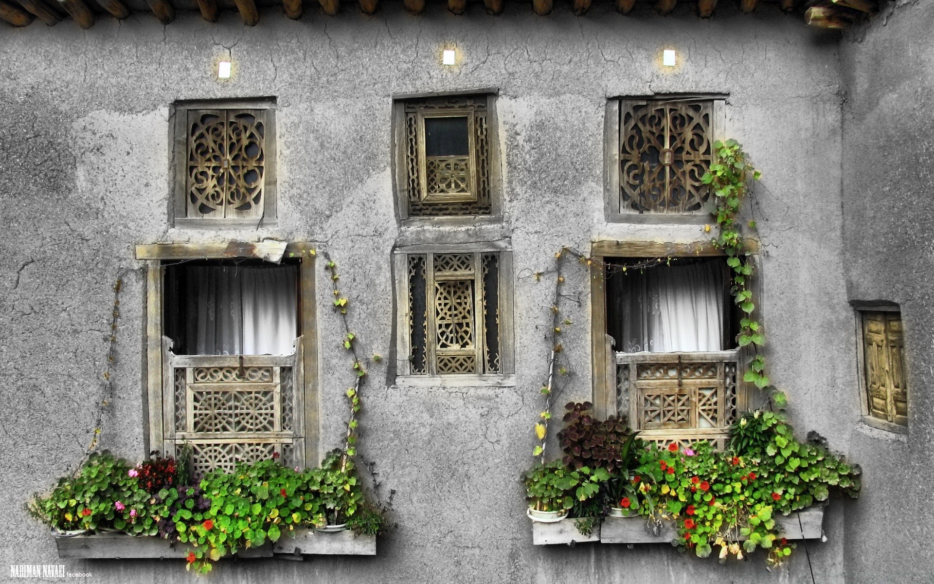 Luz de la noche de la ciudad de la noche en las ventanas de las casas del techo
