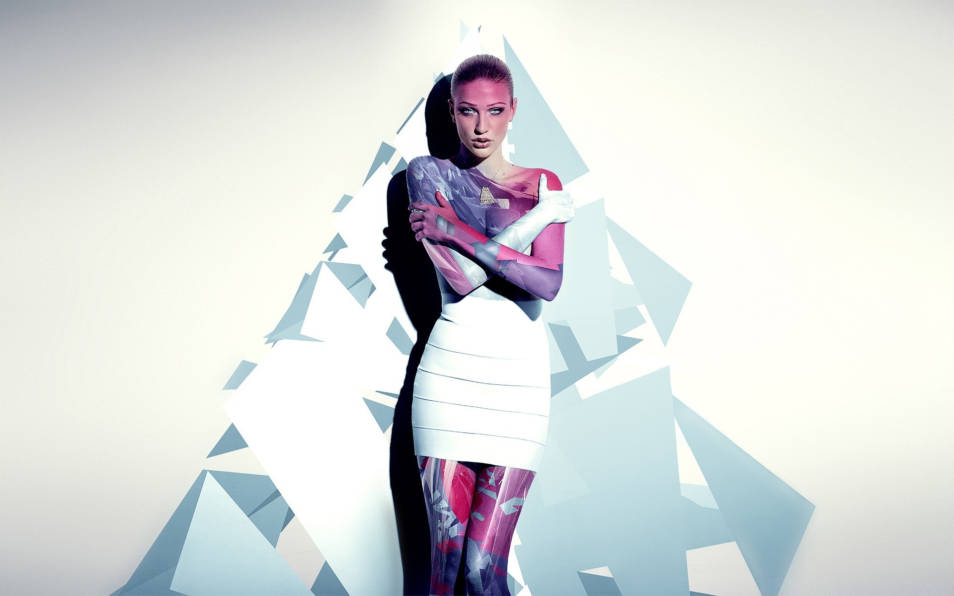 Modelo en vestido blanco posando