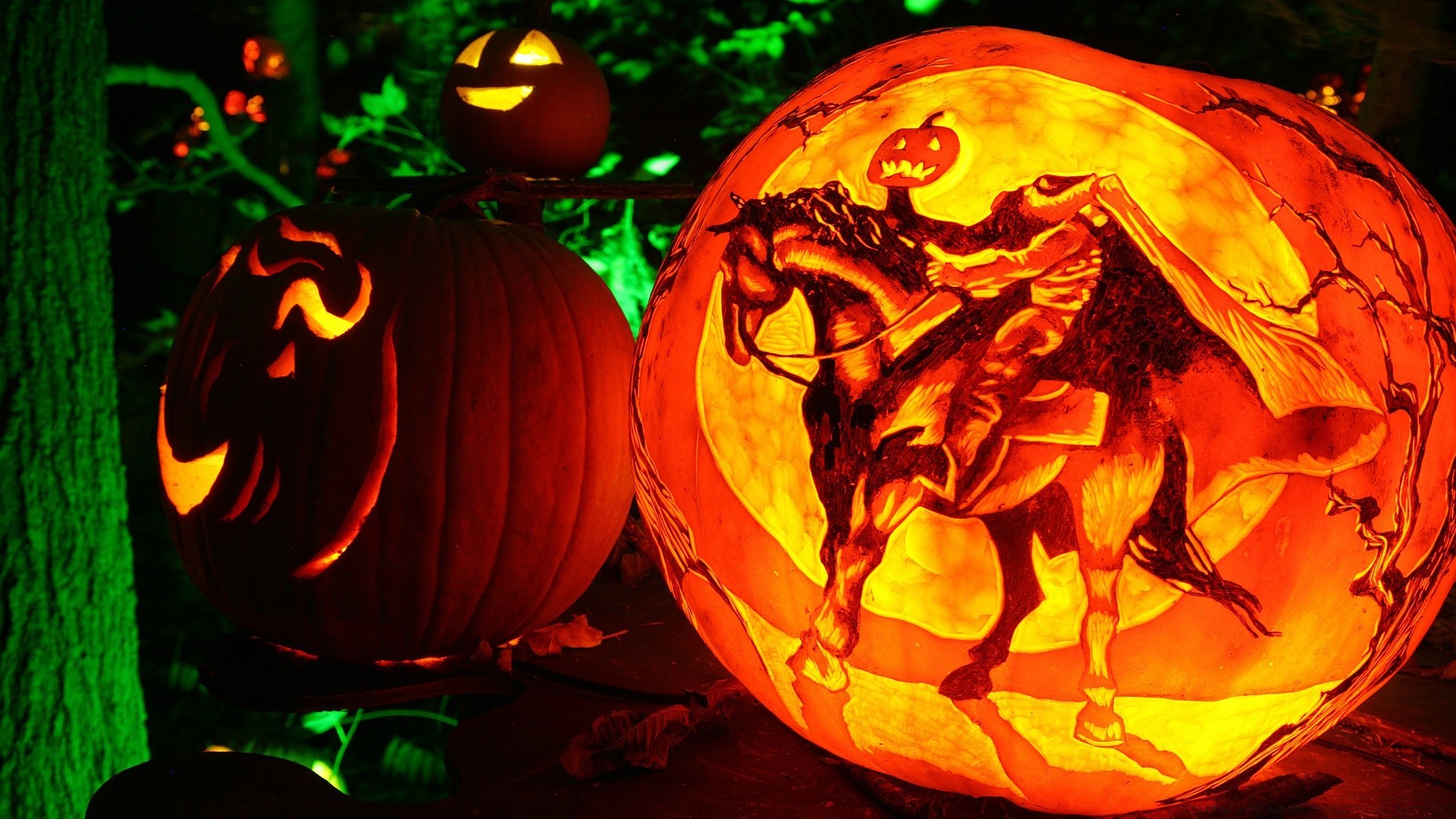 Fiesta de Halloween y calabazas con diferentes emoticonos
