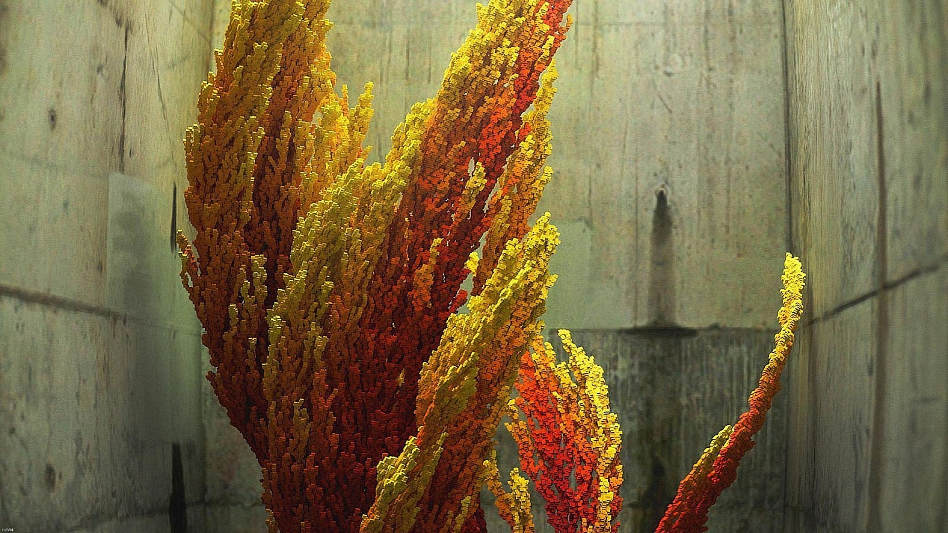 Criatura mística gris con el pelo rojo largo