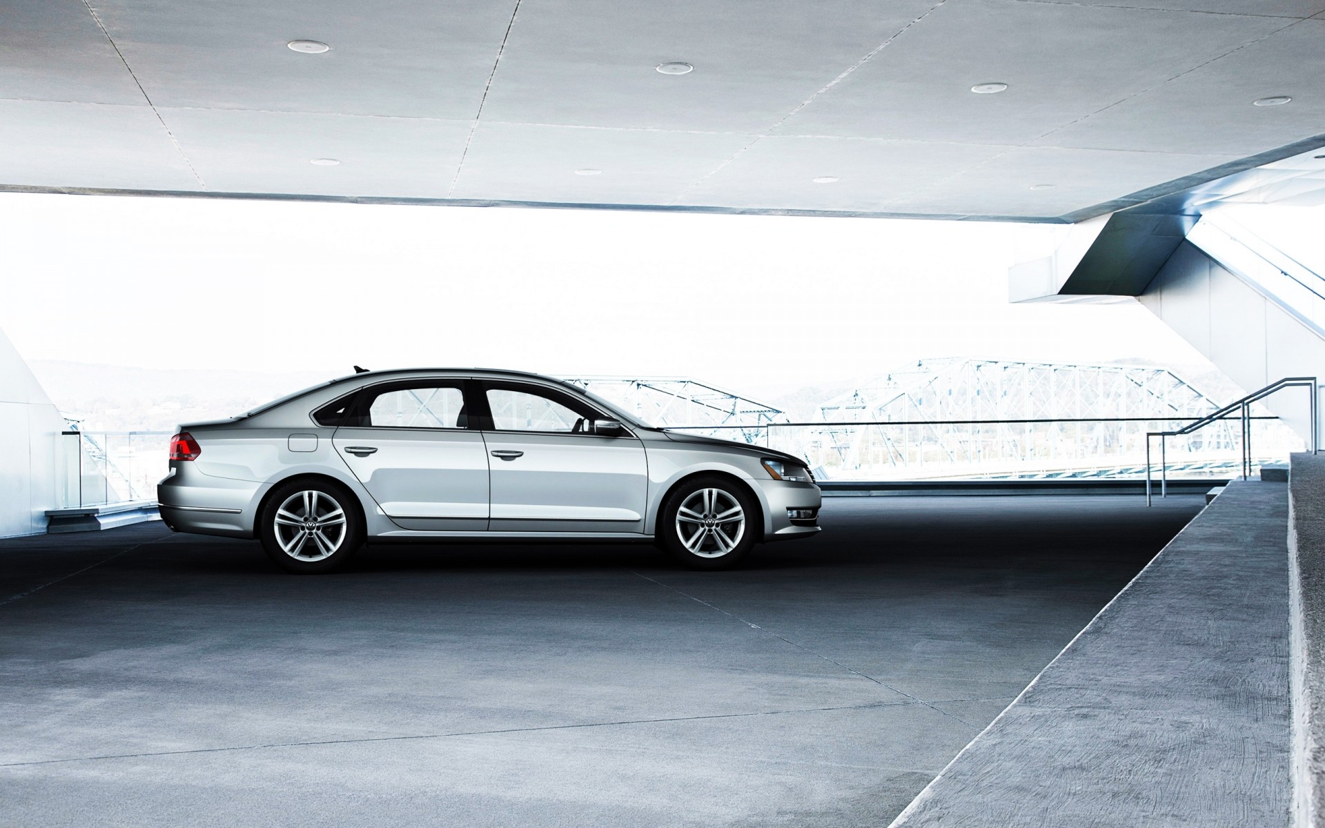 Un Volkswagen negro se encuentra en el asfalto contra el cielo
