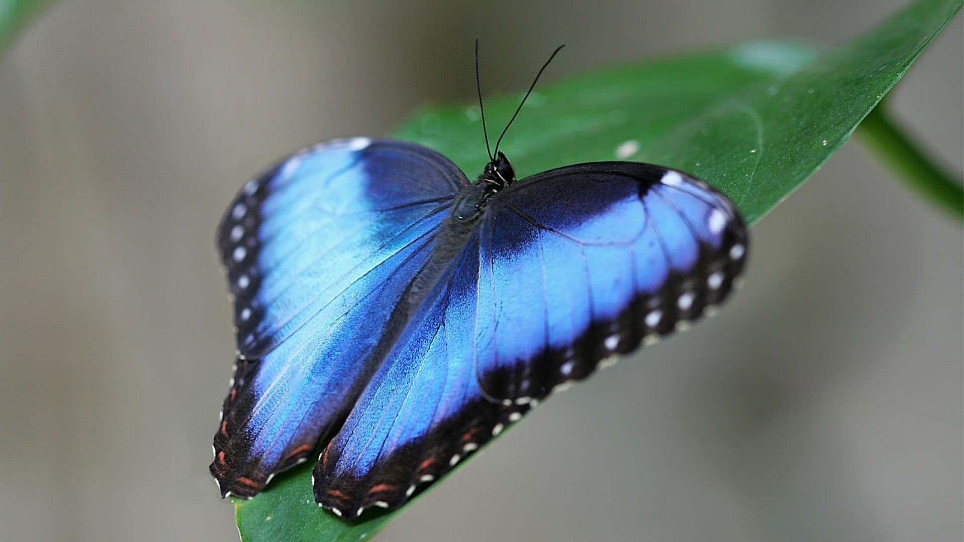 Naturaleza mariposa azul en hoja verde