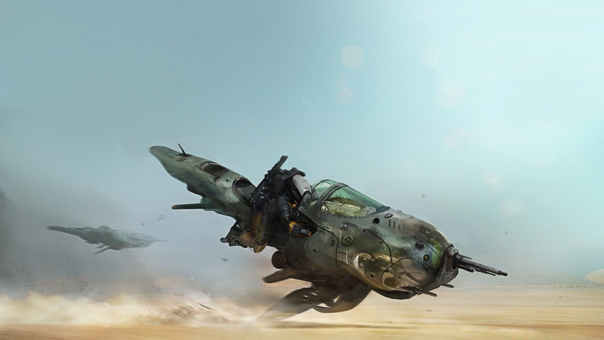 Un luchador en vuelo en el fondo de un cielo tranquilo