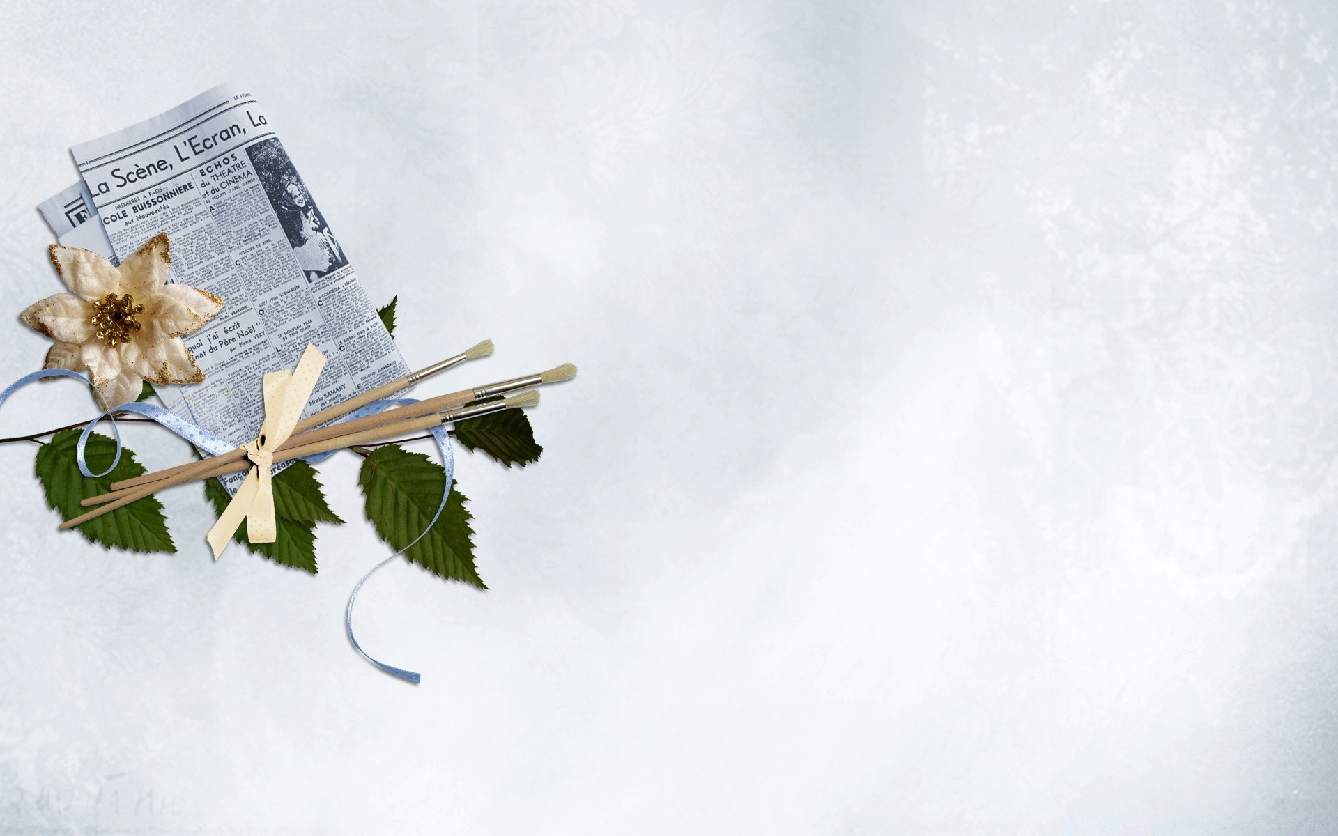 Vintage. Periódico nuevo. Pinceles. Flor seca