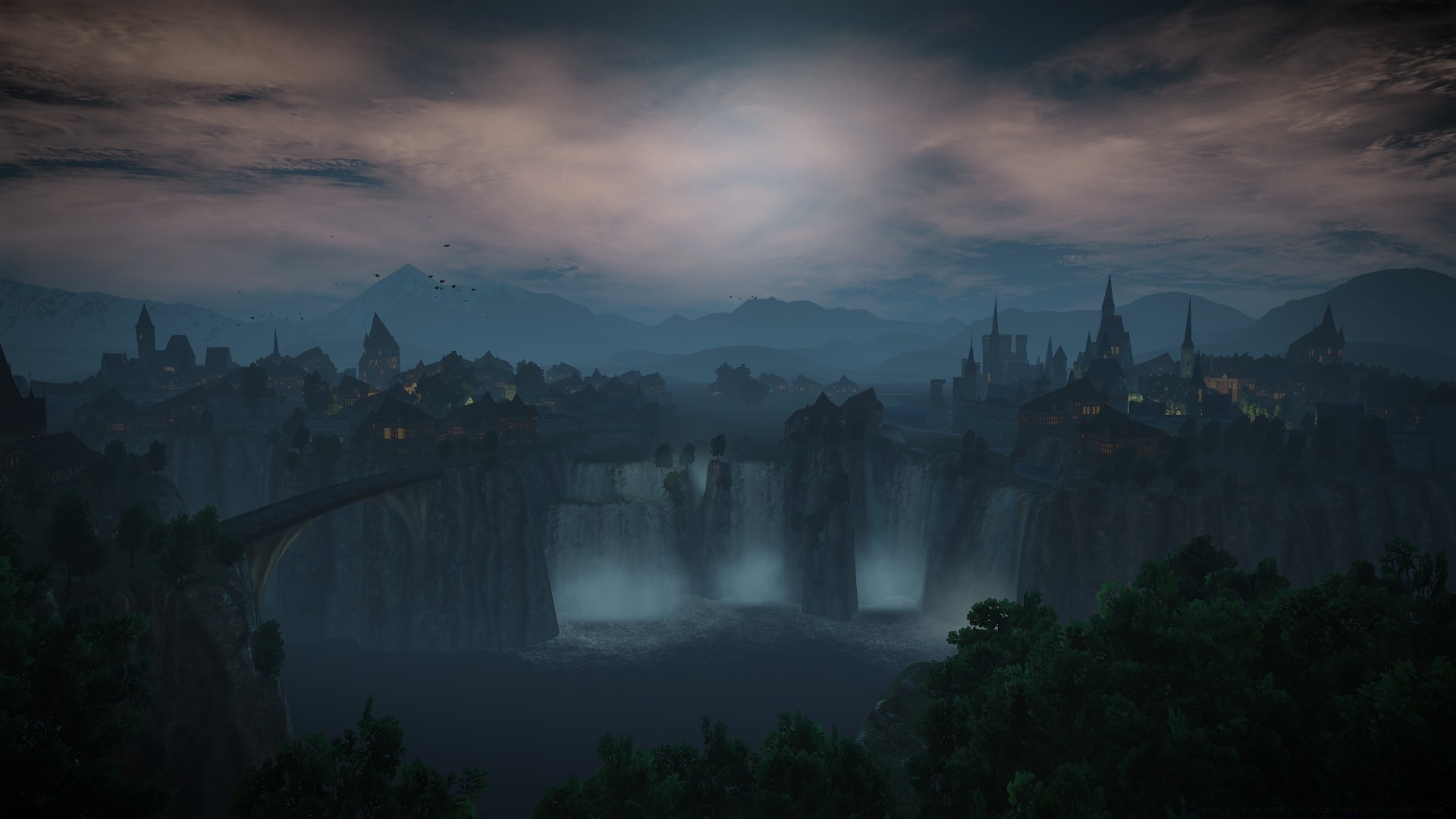 Niebla sobre el río cerca de las murallas de la ciudad