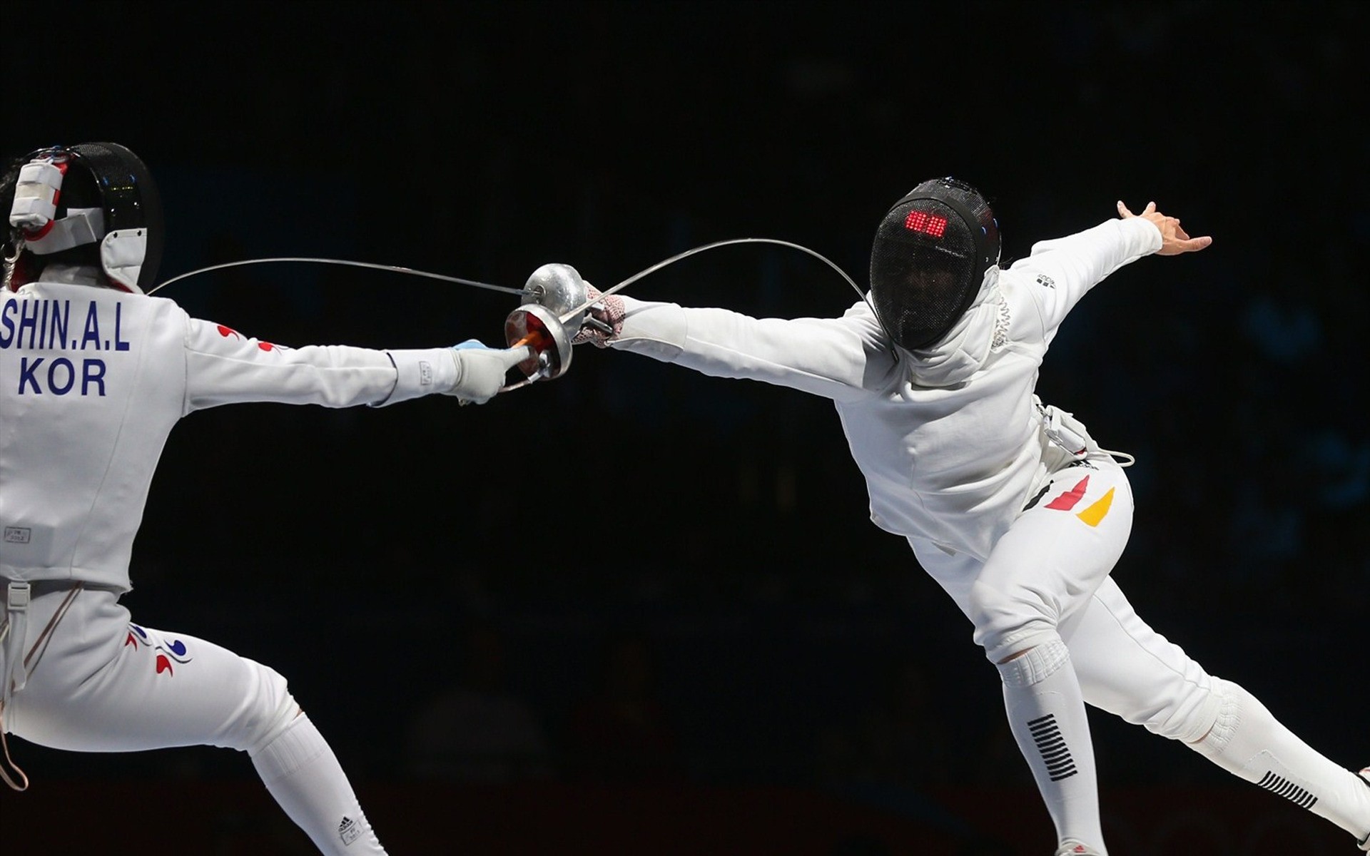 Los juegos olímpicos de esgrima dos pinchazos entre sí
