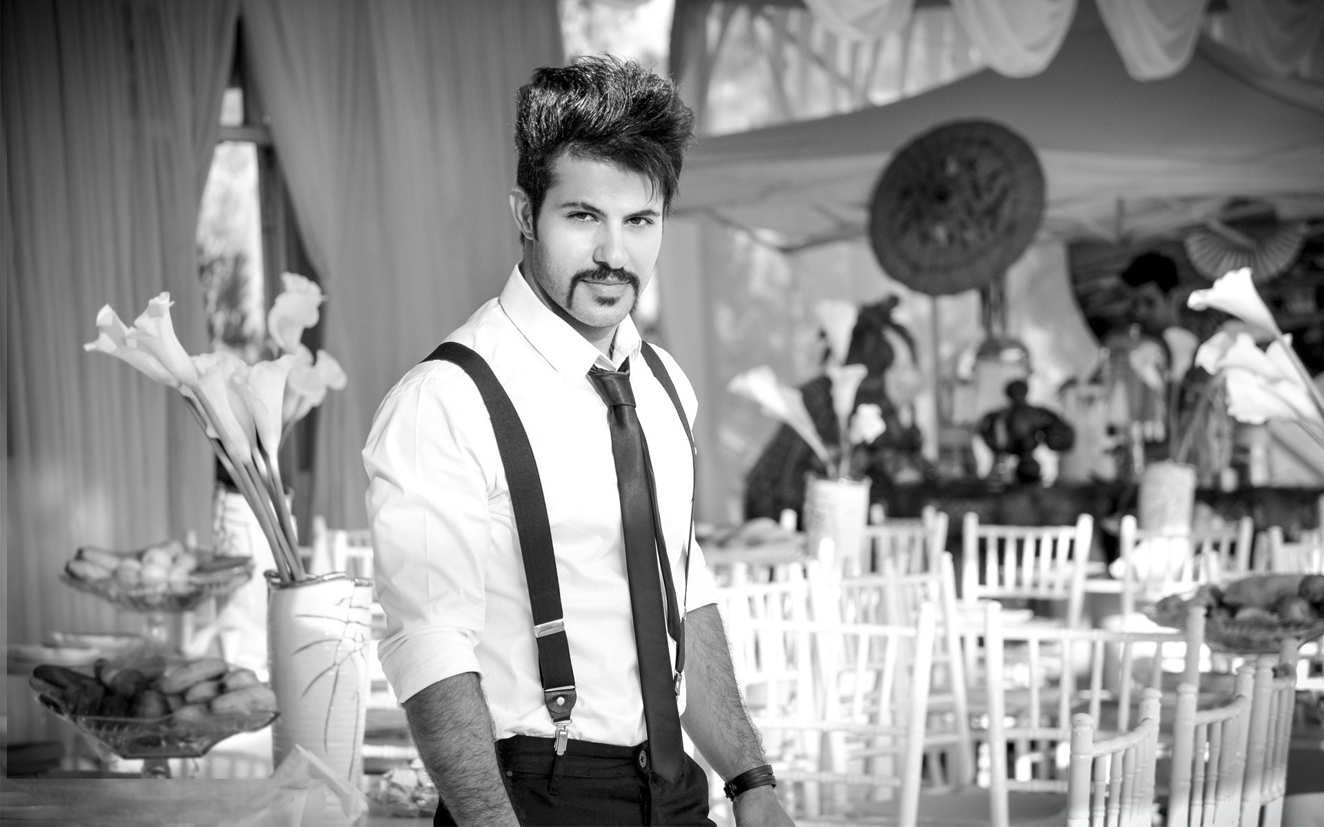Fotografía en blanco y negro de un joven