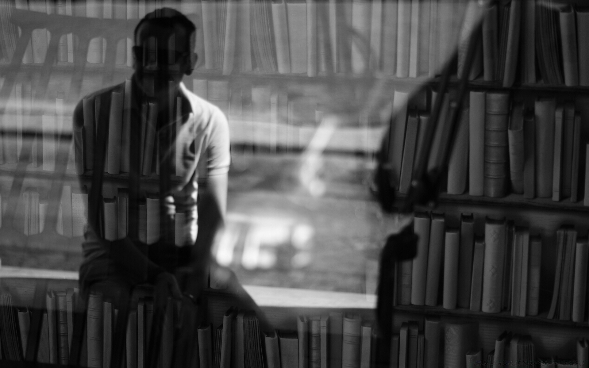 Foto en blanco y negro con telarañas en el fondo de la ciudad