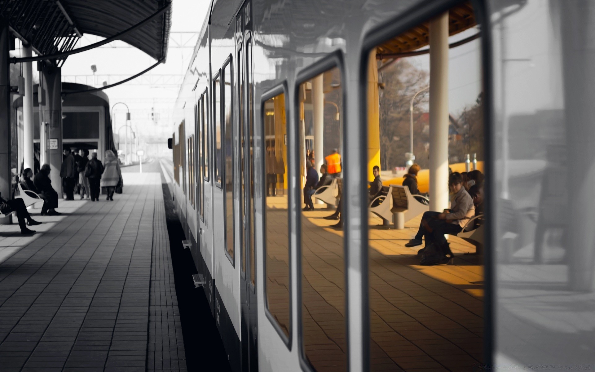 Calle de ferrocarril blanco y negro en él paseo a la ciudad