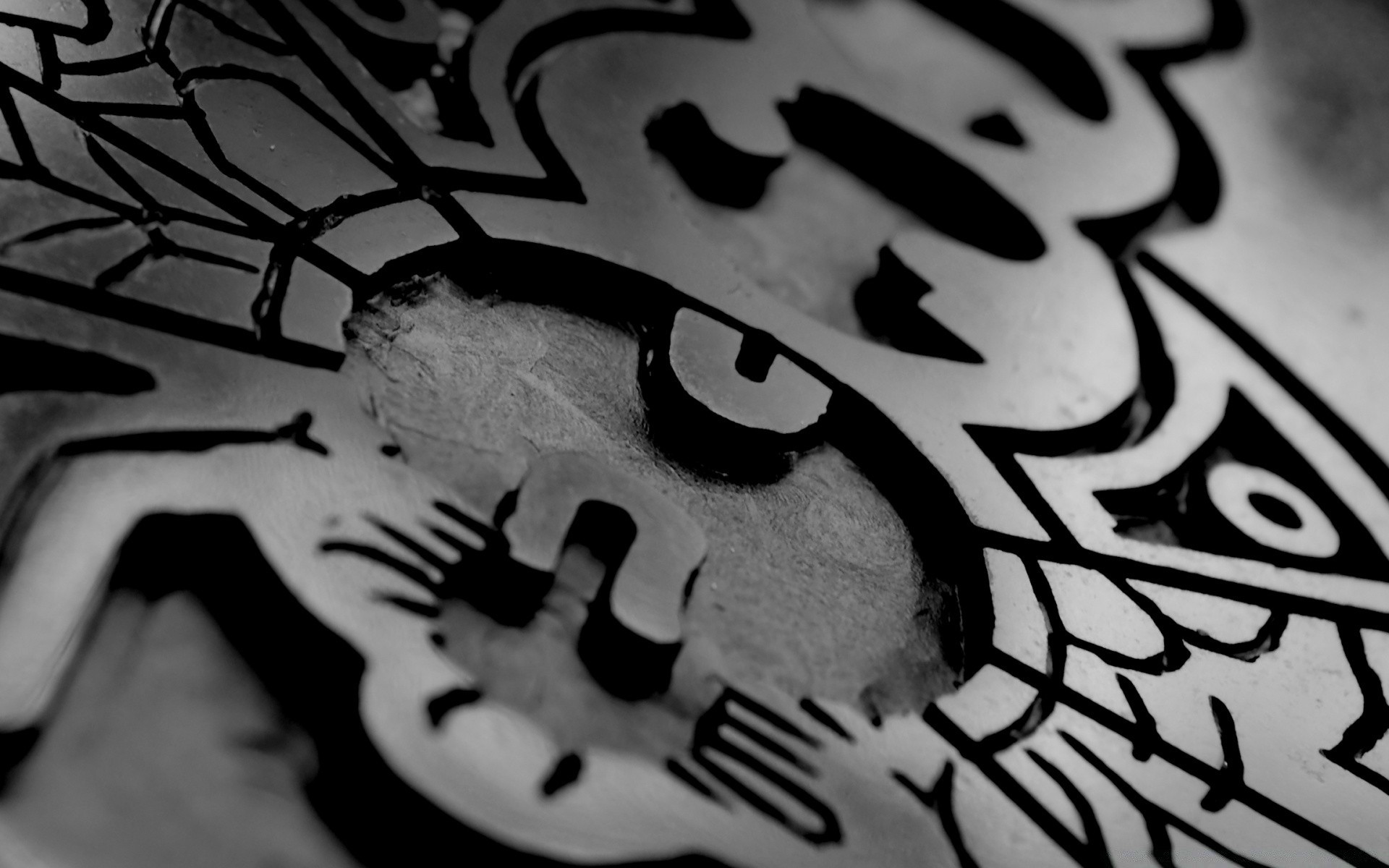 Imagen borrosa, en blanco y negro de la calle y la luz en el vidrio